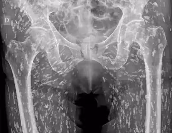 國外一名男子因臀部疼痛前往醫院檢查,不料X光片竟顯示,他的骨盆周圍布滿了數以百計的蟲卵,被斷定患上由豬肉絛蟲(Taenia solium)引起的豬囊尾蚴病(Cysticercosis) ,而這種疾病是因為男子食用未煮熟或生豬肉所致。