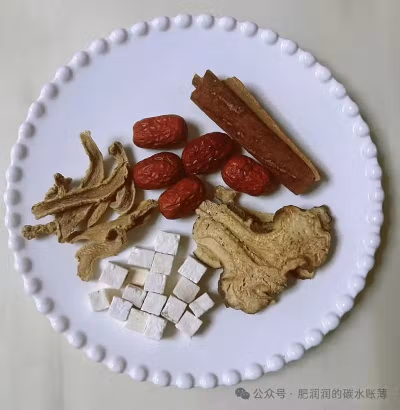 乾薑5克 桂枝5克 茯苓10克 白朮10克 紅棗5顆