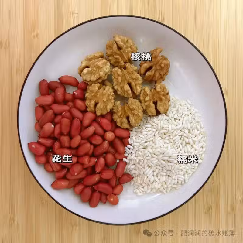 食材:核桃30g,花生20g,糯米15g,牛奶100ml
