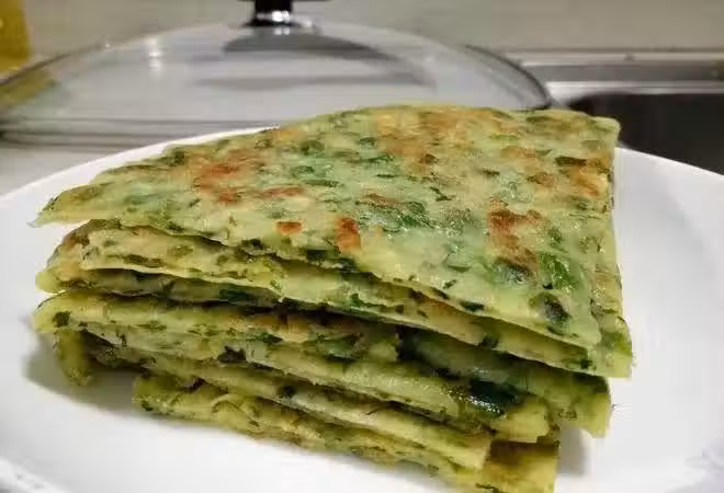 芹菜葉餅可以當早餐,營養又方便。
