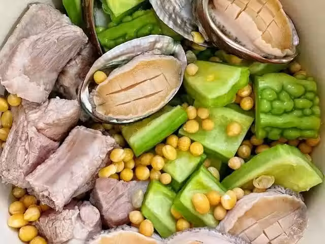苦瓜,鮑魚,黃豆,乾貝,薑片,玉竹,排骨