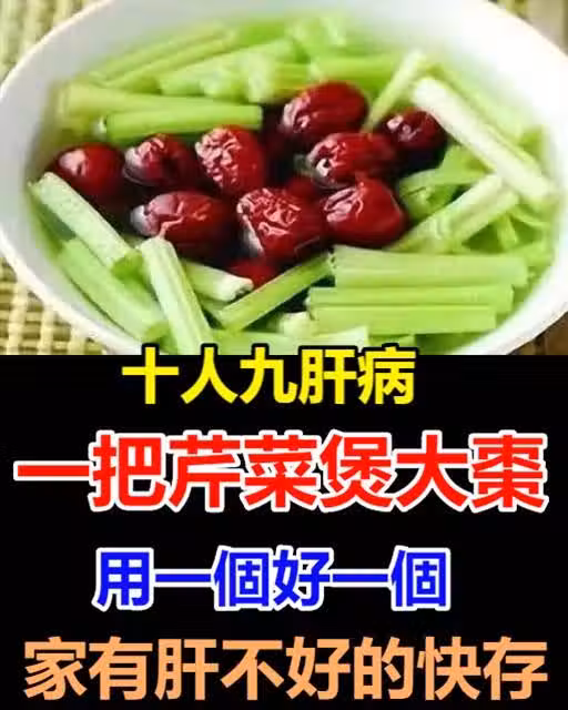 十人九肝病,一把芹菜煲大棗, 肝病的救星,家有肝不好的要知道。