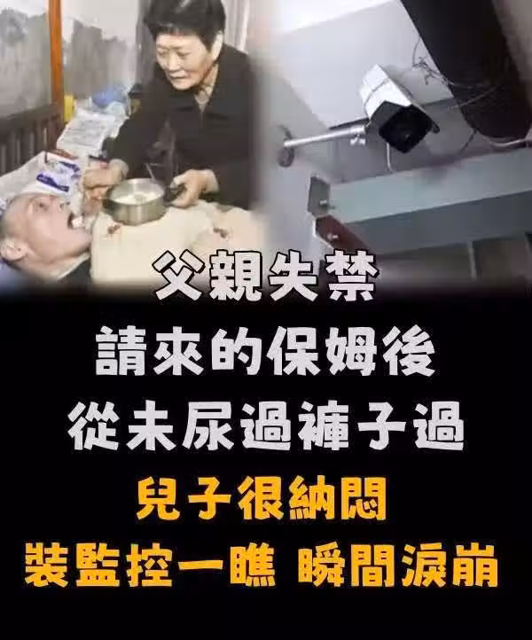 父親失禁, 請來的保姆後從未尿過褲子過,兒子很納悶,裝監控一瞧,瞬間淚崩.