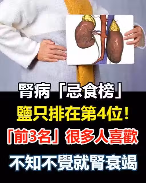 腎病「忌食榜」鹽只排在第四位!公開「前三名」很多人都喜歡,不知不覺就腎衰竭