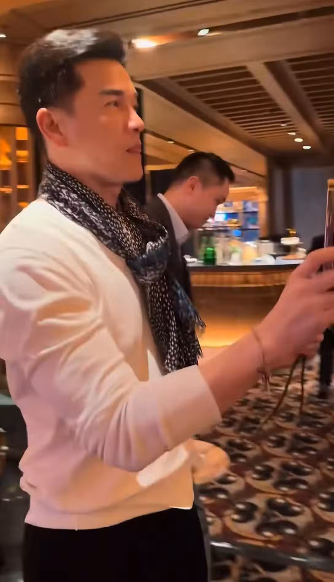 截圖中他側身聽妻子唱歌時,下頜線清晰銳利,襯衫下若隱若現的肱二頭肌線條讓年輕網友自慚形穢。