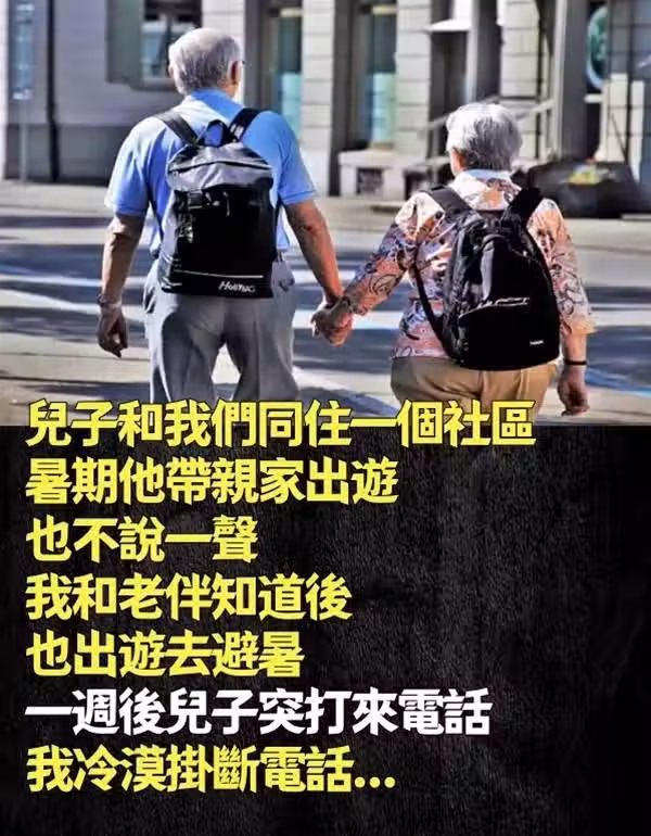 兒子和我們同住一個社區, 暑期他帶親家出遊,也不說一聲!!我和老伴知道後「也出遊去避暑」,一周後「兒子突打來電話」我冷漠掛斷電話...