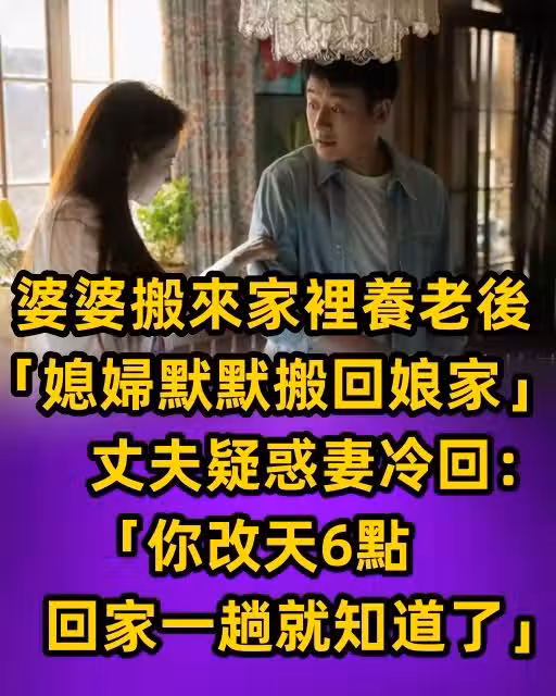 婆婆搬來家裡養老後「媳婦默默搬回娘家…」丈夫疑惑妻冷回:「你改天6點回家一趟就知道了....」