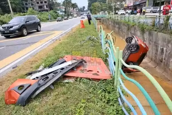 轎車失控墜大溝 民眾英勇衝下溝救人