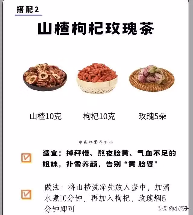 食材:山楂10g+枸杞10g+玫瑰5朵。