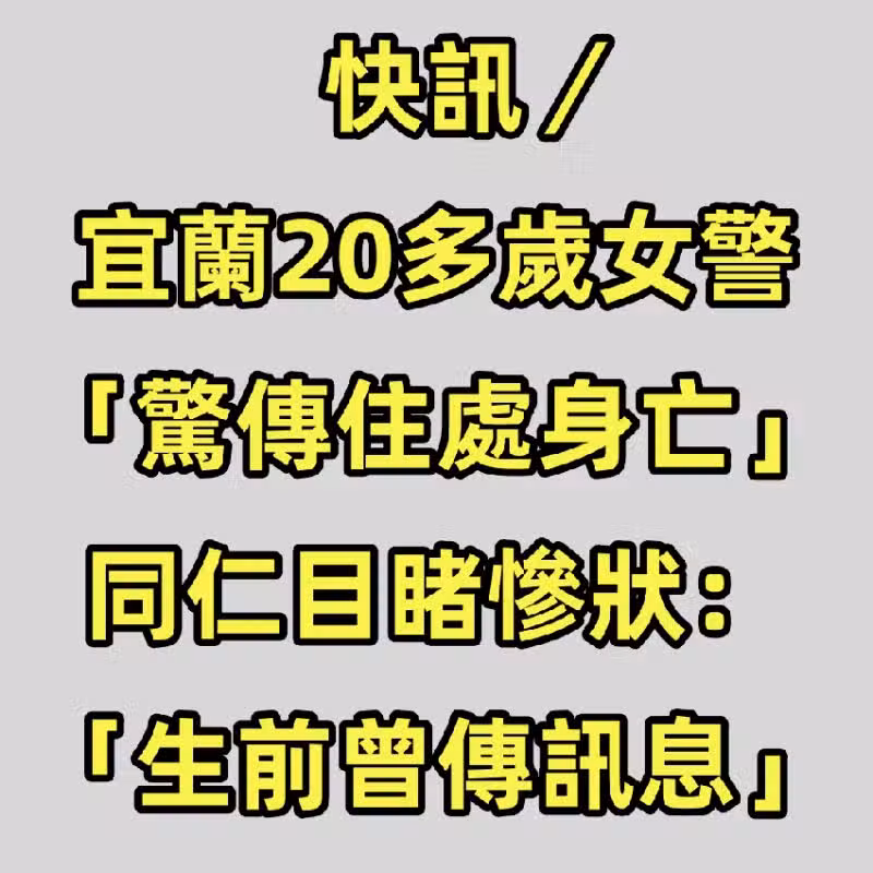 快訊/宜蘭20多歲女警「驚傳住處身亡」!同仁目睹慘狀:「生前曾傳訊息」!