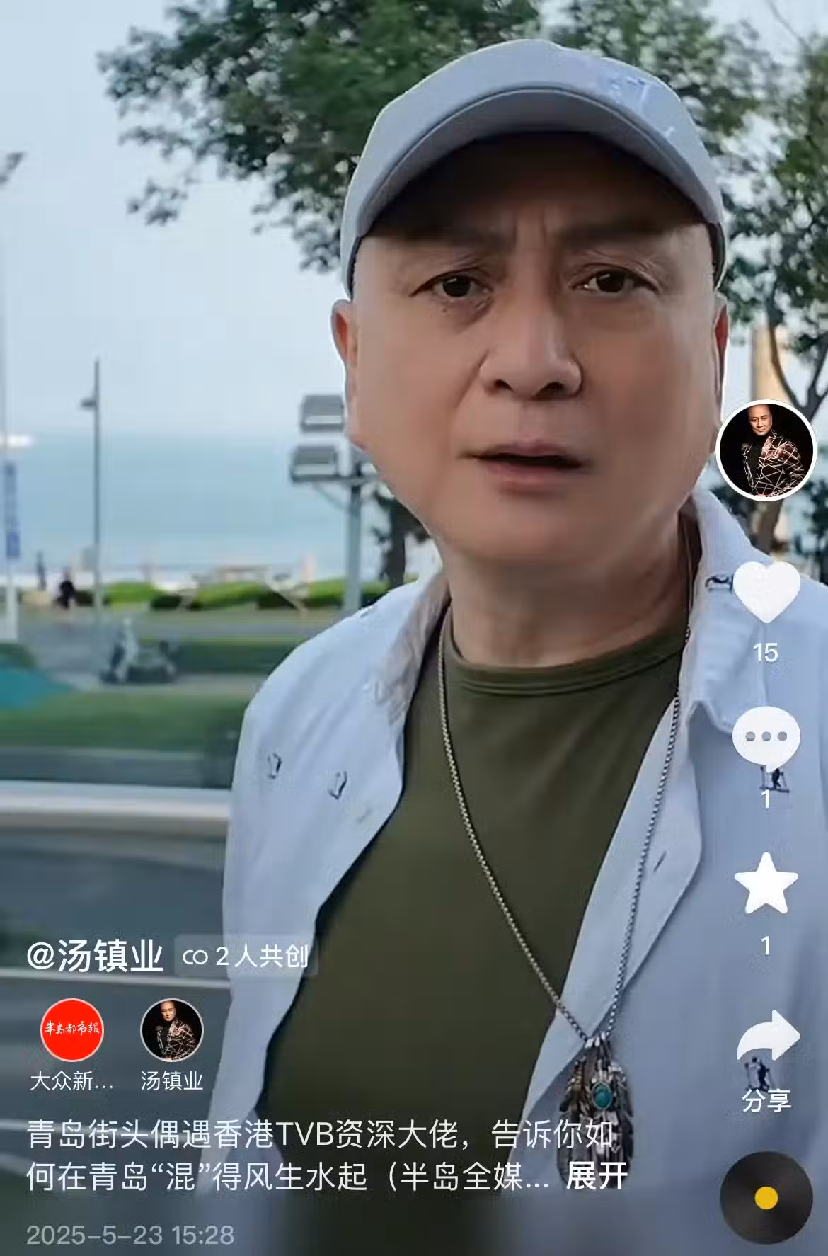 時隔三天的時間,湯鎮業再度分享動態,並在留言處說道:青島街頭偶遇香港TVB自資深大佬,告訴你如何在青島「混」得風生水起。