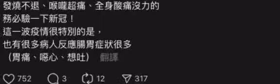 小資醫生提醒,大家一定要做好防護,除了「發燒不退、喉嚨超痛、全身酸痛沒力」上述症狀須留意以外,他也強調,這次的疫情很特別,許多病患會有「胃痛、噁心、想吐」等腸胃症狀。