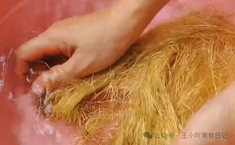 將玉米須全部剪好後,放入清水中,輕輕揉搓,洗去上面的灰塵和髒東西。可以多換幾次水,確保清洗乾淨。洗凈後,將玉米須撈出,控干水分,放在一旁備用。
