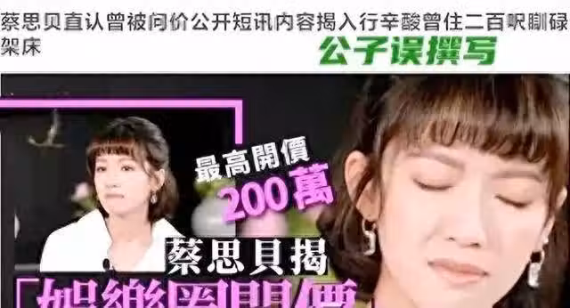 蔡思貝在採訪中還透露,他收到簡訊要求過夜,對方表示願意支付她每晚200萬的費用。