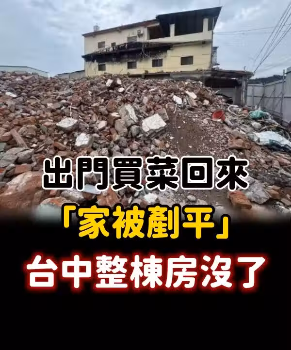 快訊/出門買菜回來「家被剷平」台中整棟房沒了!!!