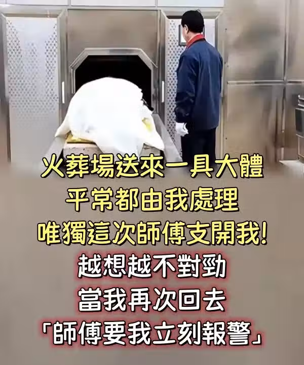 火葬場送來一具大體,平常都由我處理,唯獨這次師傅支開我!!越想越不對勁,當我再次回去「師傅要我立刻報警」