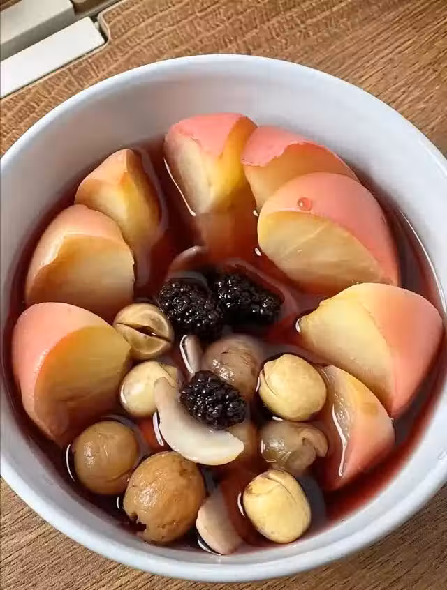 百合、桂圓、蓮子、桑葚、紅糖、蒸蘋果