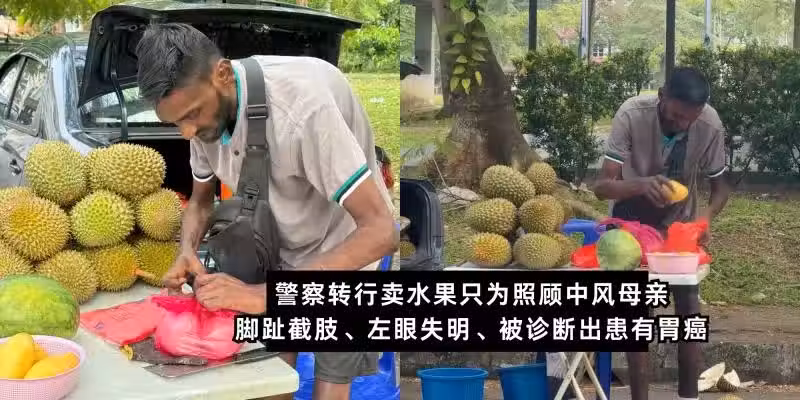 警察轉行賣水果 【腳趾截肢、左眼失明、被診斷出患有胃癌】努力堅持照顧中風母親