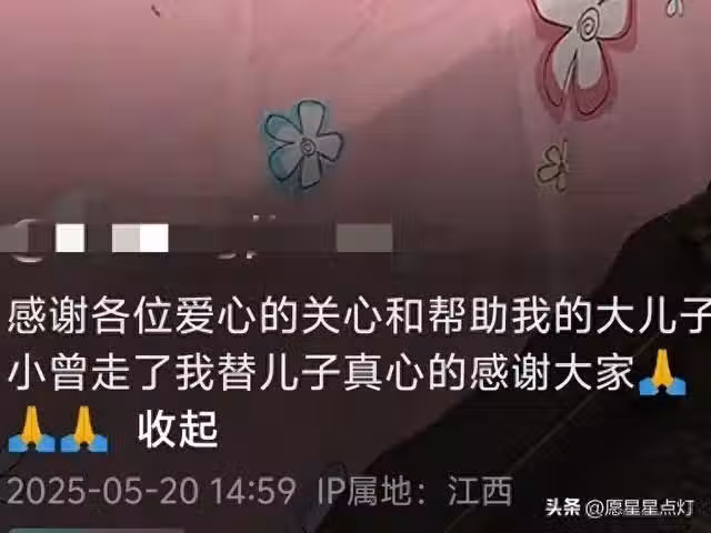想不到小曾的這一天來得那麼快,不知是否受到了弟弟國國去世的打擊,才使病情又再惡化,讓他緊隨弟弟的步伐、去找天堂的弟弟了...據悉,2024年兩兄弟相繼患病,同時確診肝癌,龐大的心理打擊和接踵而來的醫藥費,壓得這家人喘不過氣來,雖然活著卻像身處地獄,兩兄弟更是被病魔折磨得不成人樣。