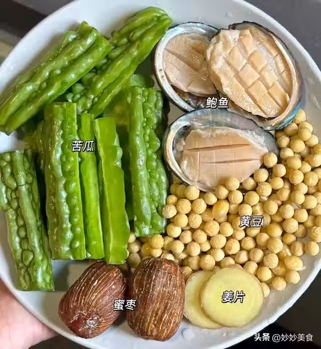 做法簡單易操作,準備好苦瓜、鮑魚、黃豆、薑片、蜜棗和排骨,按照步驟處理食材、下鍋燉煮就行。