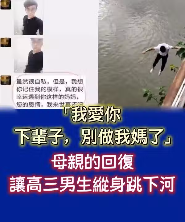 「我愛你,下輩子,別再做我媽了!」母親的回覆讓高三男生縱身跳下河
