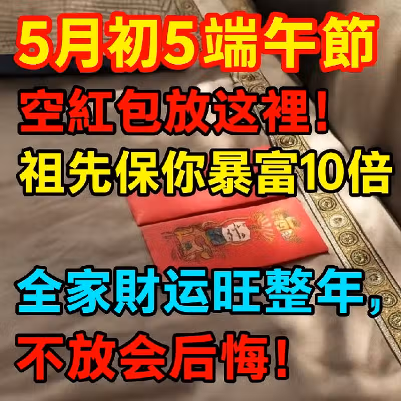 家裡有空的紅包嗎?5月初5端午節當天,在「這個地方放一個」,祖宗保你財運暴漲100倍!