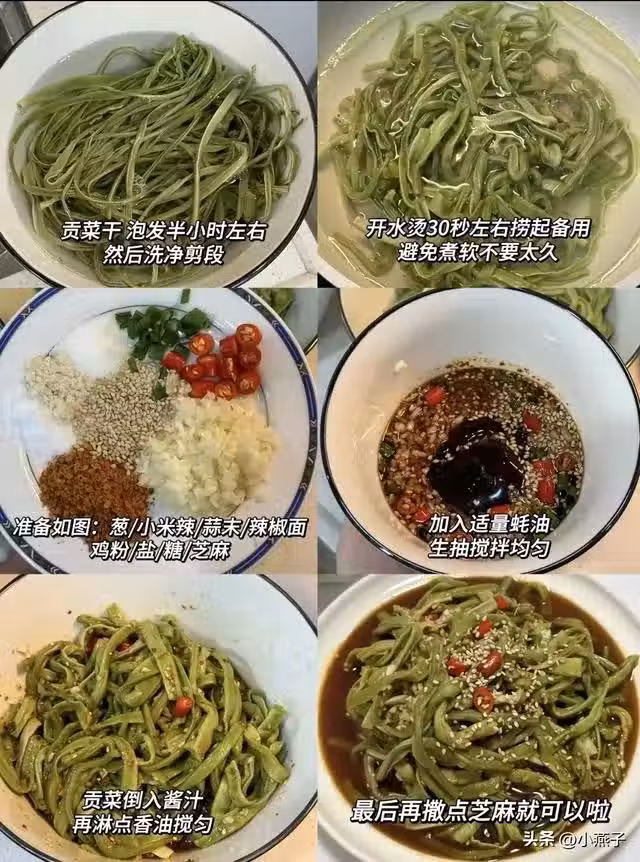 食材:貢菜乾50g、辣椒麵、白芝麻。