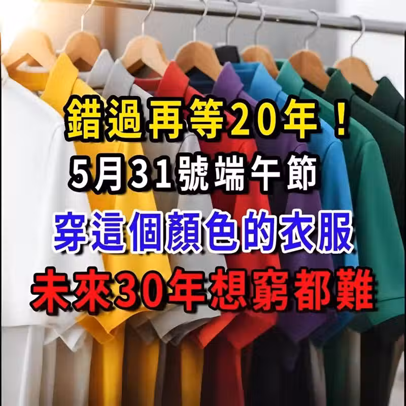 錯過再等20年!今年端午不一般,5月31號,一定要穿「這個顏色」的衣服,未來30年想窮都難