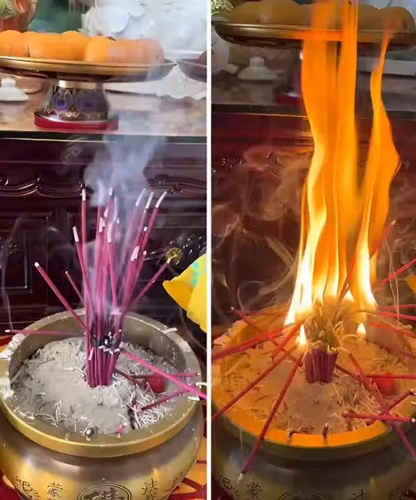 畫面中,一名女子正在給財神上香,然而香竟從中間開始燃燒,這一不尋常的現象瞬間引來眾多討論。