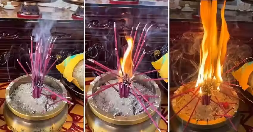 女子「給財神上香」結果香竟從中間燒起來,網驚:這可是斷頭香啊