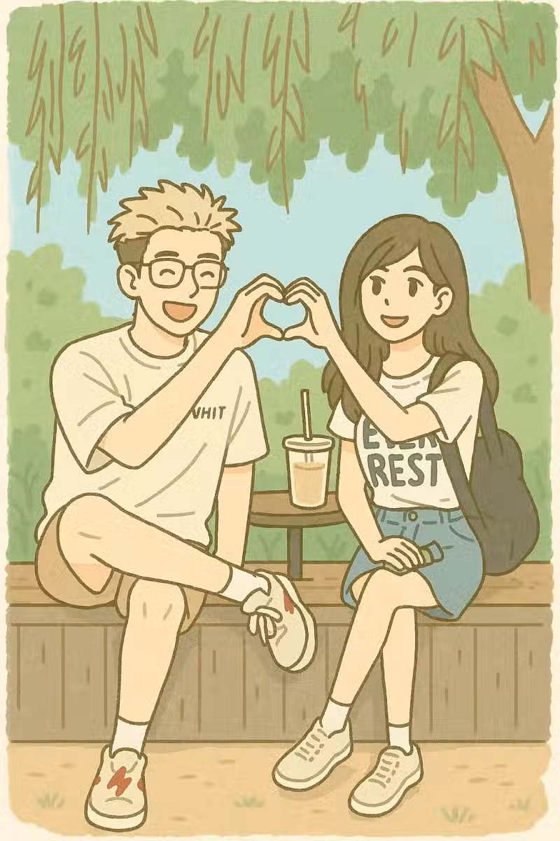 一個女孩坐在窗邊對著電腦敲字,笑容藏不住。對面坐著一個男生,看她笑,也跟著笑。他們之間沒有任何肢體接觸,說話也不大聲,整個氛圍禮貌、克制,甚至有點「文藝感」。