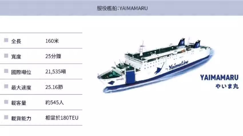 這艘名為「YAIMA丸號」的渡輪,前身是從韓國Panstar Cruise公司購入的「Panstar Dream」號,經過全面翻修後重新命名。