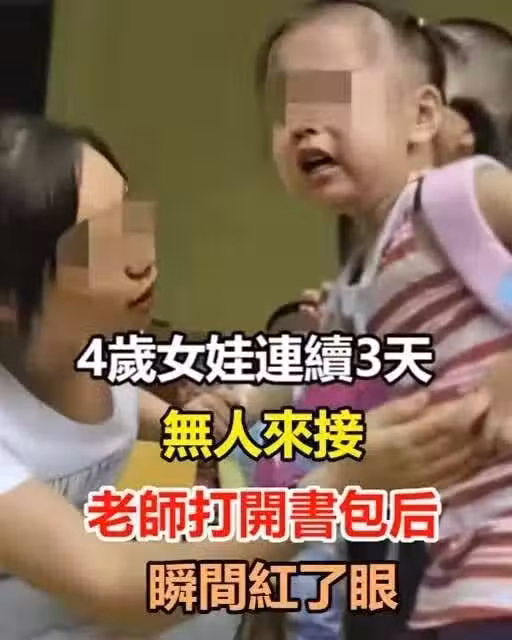 幼兒園4歲女娃「連續3天」無人來接,老師打開書包後,瞬間紅了眼!