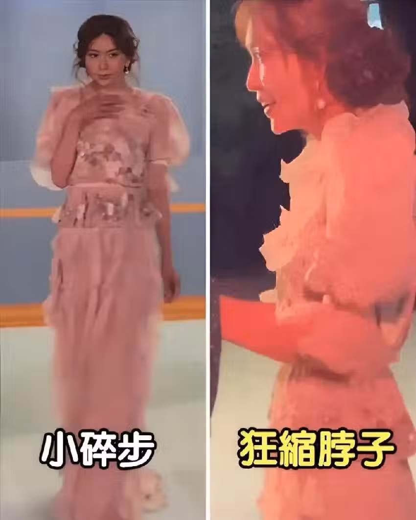 但在媒體拍的影片里,她縮著脖子、走著小碎步,看上去都縮縮了,