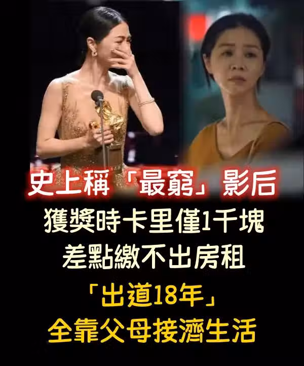 她是史上稱「最窮」影后 獲獎時卡里僅1千塊 差點繳不出房租「出道18年」全靠父母接濟生活...
