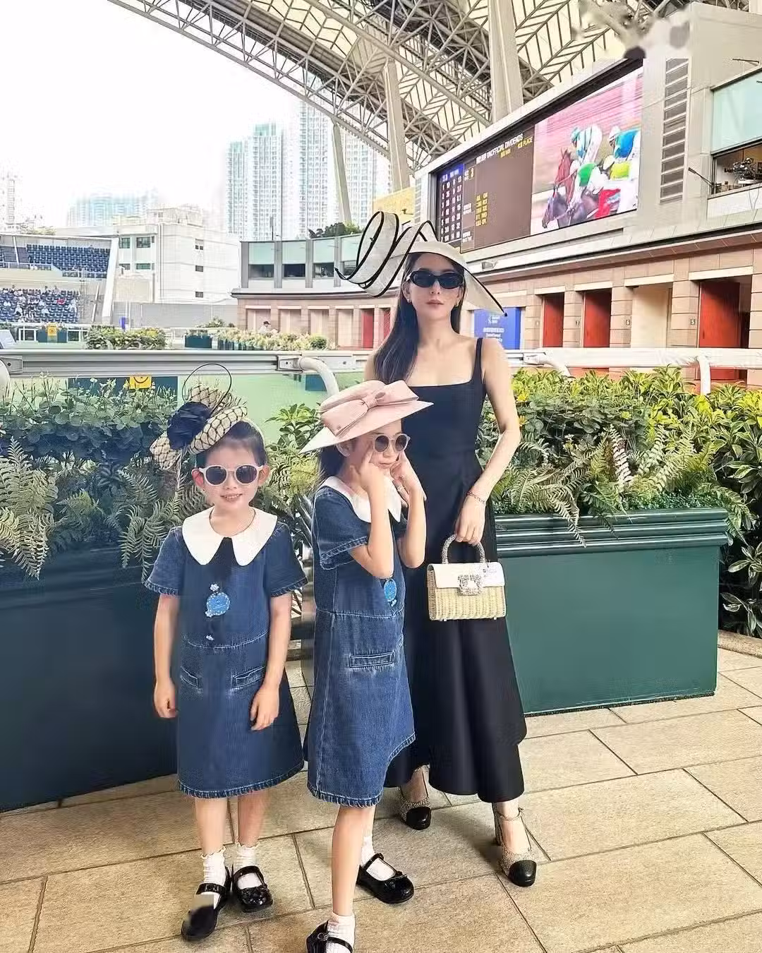 日前,方媛曬出一家四口前往馬場的照片,她與郭富城穿著情侶裝,兩個女兒則身穿深藍色牛仔裙,和爸媽一樣戴著太陽鏡。