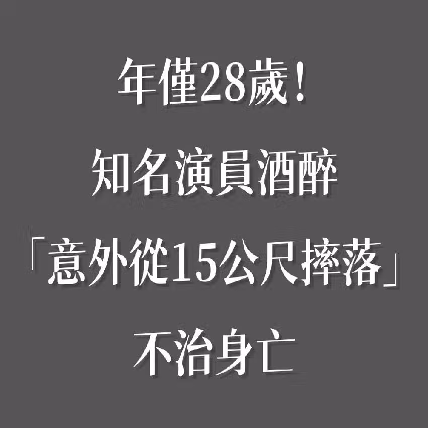 28歲 知名演員酒醉「意外從15米摔落」不治身亡