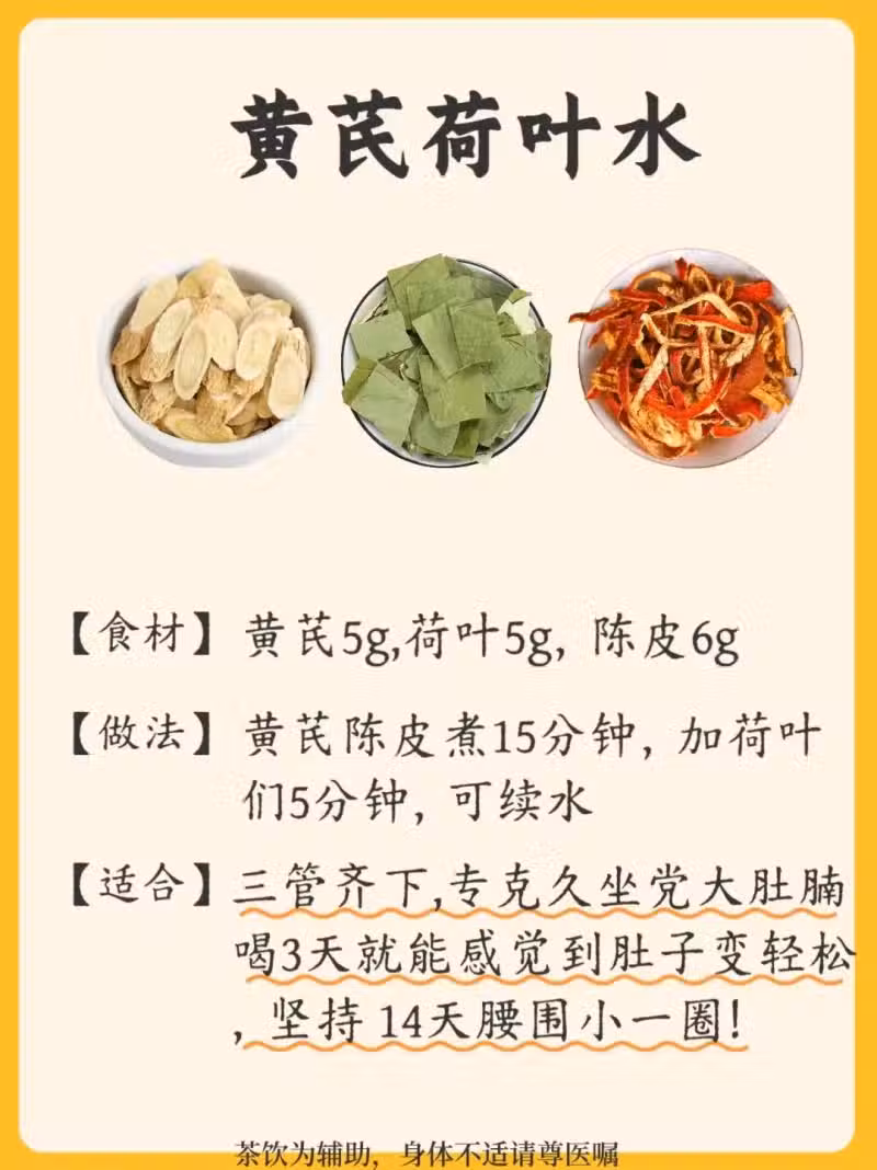 ✔️陳皮理氣化痰,荷葉刮油脂,黃芪補而不膩,減少脂肪堆積。