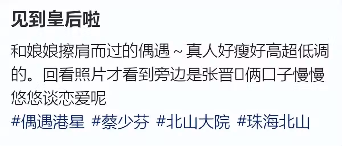 網友透露稱與蔡少芬一家擦肩而過,雖說蔡少芬當日打扮的很低調,但又高又瘦的她很難不被注意到,而令人羨慕的是,與張晉結婚17年的蔡少芬,身為老夫老妻的倆人私下裡也好甜,從他們的相處來看依舊給人一種戀愛中的小情侶的感覺,不愧是圈內模範夫妻。