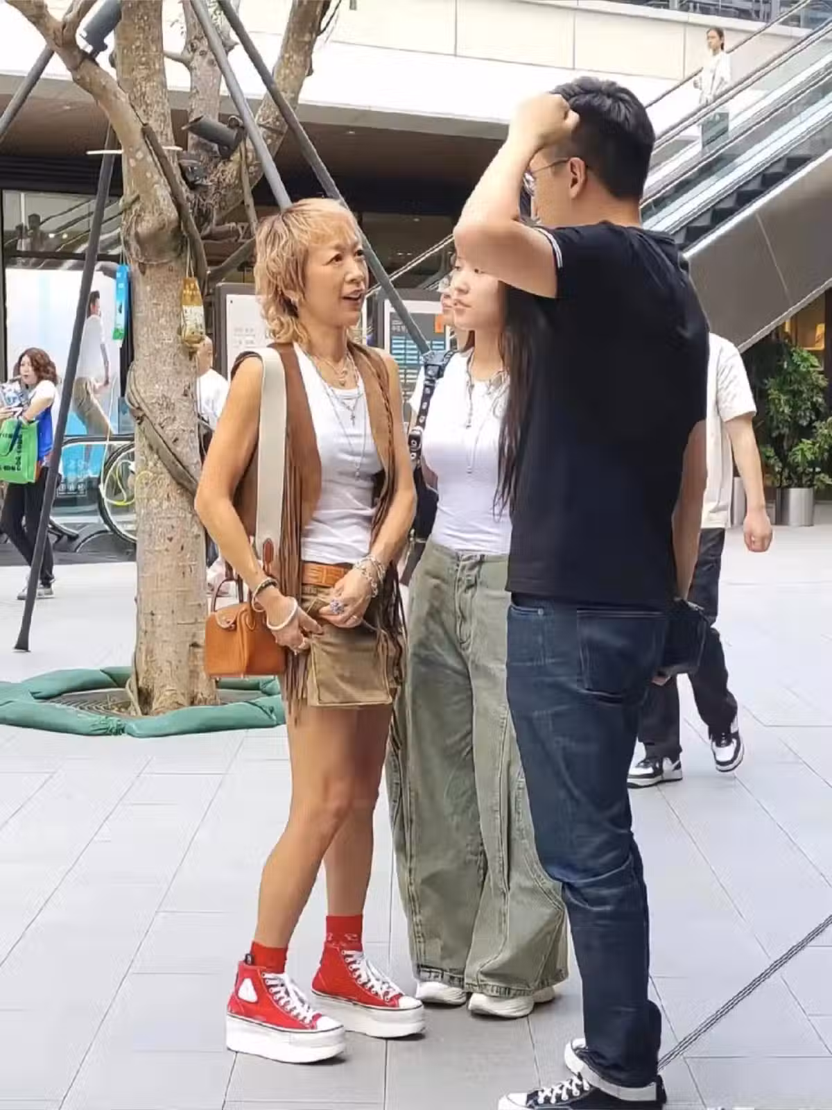 任賢齊老婆和女兒現身深圳,56歲陳則妤打扮前衛,穿了一雙丑鞋子