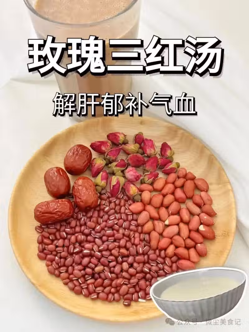 紅豆30g+紅皮花生20g+紅棗4顆+玫瑰花5g