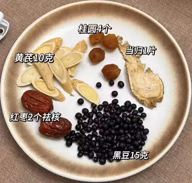 黃芪:補氣行血,推動血液循環,兼補脾胃。
