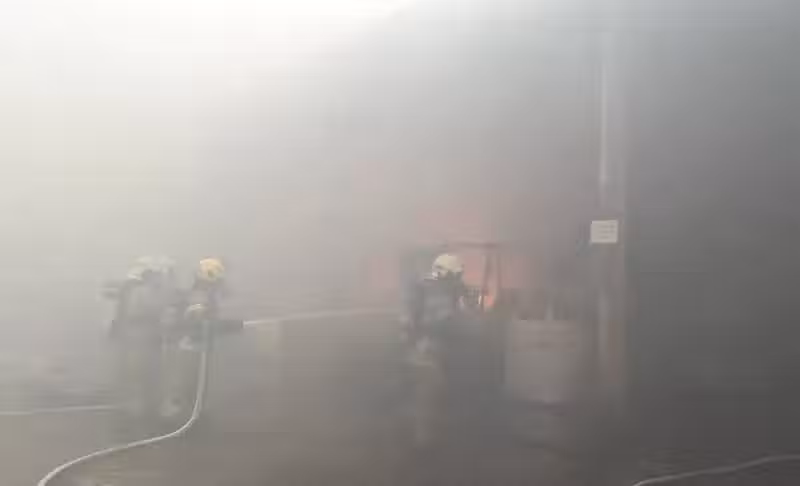 起火點位於一樓鐵皮建築物內的倉庫,裡面存放著電木板半成品及墊木板等易燃物品。