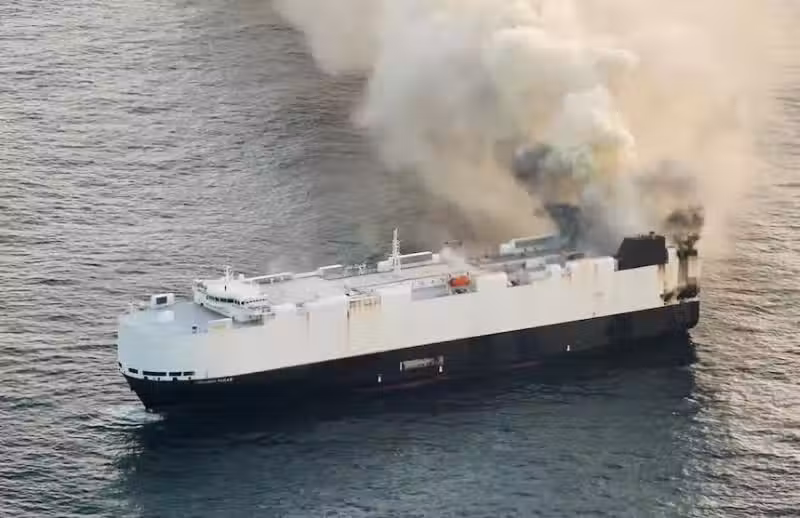 6月5日,一艘載有3000多輛汽車的滾裝船在太平洋上起火,引發關注。