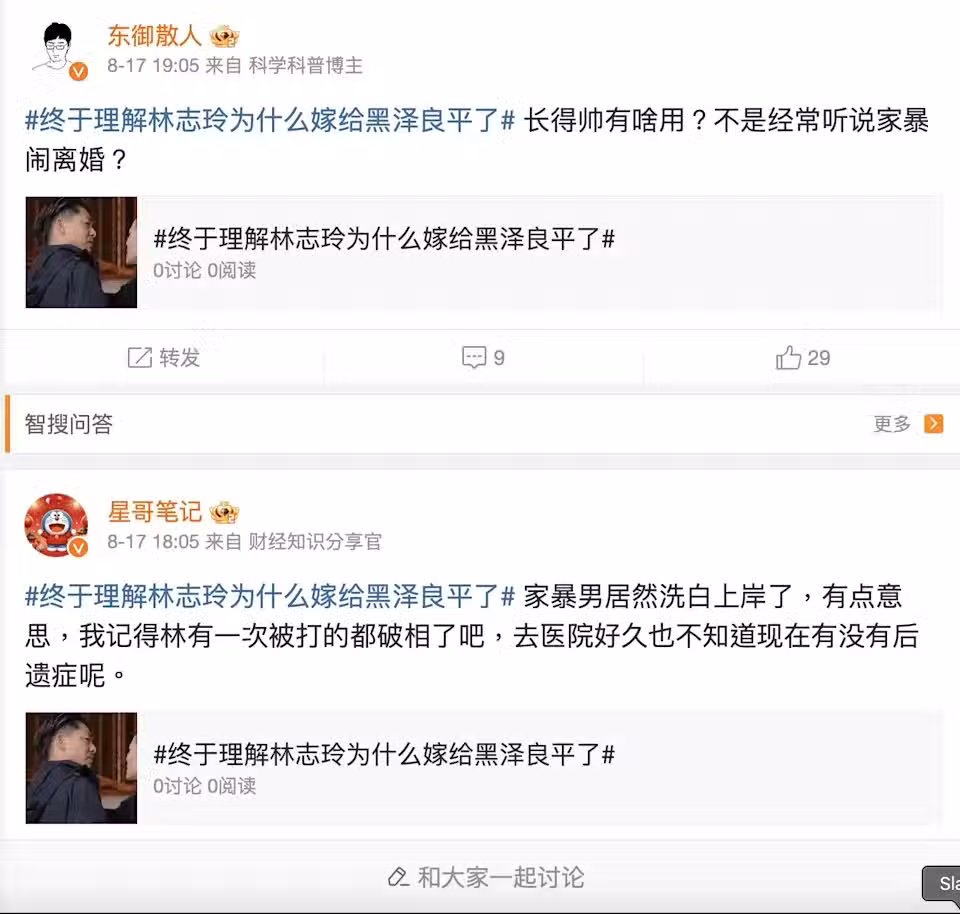 林志玲也透過經紀人發聲,表示希望大家不要再為一看就很假的不實網絡謠言操心和傳播了,同時提醒那些農場文寫手不要亂配其他人的圖片。林志玲也說:「謝謝大家關心,姐姐、姐夫都很好,結婚就是雙方都要努力經營婚姻保持幸福。」林志玲還笑說:「沒有家暴,只有抱抱!」希望自己傳遞給大家的是正能量,並表示自己至少會永遠這樣努力著。