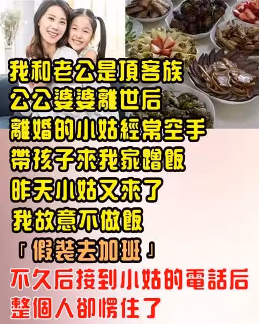我和老公是頂客族!公公婆婆離世後,失婚小姑來蹭飯,我故意不做飯「假裝加班」接到小姑電話愣住了