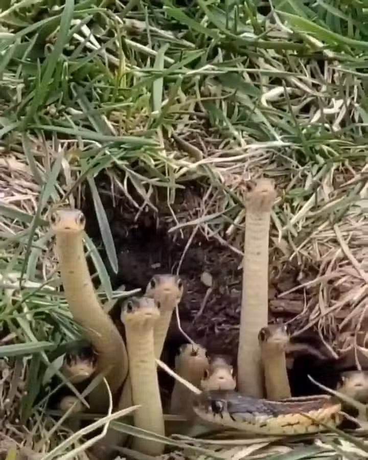 「原來蛇的正面這麼可愛嗎」、「好像陸地版花園鰻www」、「它們看起來很有禮貌」、「整家子看起來充滿好奇,目不轉睛的」、「乍看還以為是一堆蕈菇」、「直到最後有一隻蛇滑出來以前,我真的覺得它們還挺可愛」。也有人指出此為「襪帶蛇」(Garter Snake),又稱束帶蛇、園丁蛇,無毒性,體型偏小、通常不到60公分,主要產自北美,從加拿大北部至中美洲都是它們的分布範圍;襪帶蛇也是常見的寵物蛇,通常會給它們餵食魚類、乳鼠、青蛙等,食性相當廣泛,且有一定的社會性可以群養