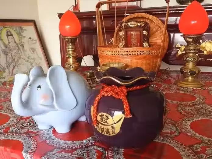 而為了提倡環保,加上近幾年埔里的空污問題又越來越嚴重,王重信在那之後又再次靈機一動,想把燒金紙也改成給現金,於是再一次擲筊詢問祖先,沒想到也獲得了許可,於是祭品和金紙的費用這下子全都變成了現金,每次祭祖都會放進供桌上的存錢筒里,一年下來大約都能存3、4千元。