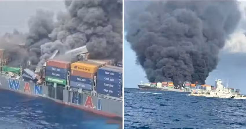 快訊/萬海貨輪大爆炸!近40個貨櫃炸飛入海「2台灣人失蹤」濃煙沖天危急情況曝