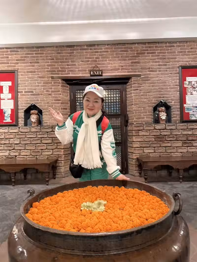 抵達尼泊爾首都加德滿都後,眼前車水馬龍、塵土飛楊的景象,與台灣截然不同。身為虔誠佛教徒的白冰冰原本已做好刻苦修行的心理準備,豈料下榻的飯店卻出乎意料地舒適,傳統建築中融入當地特色的精緻裝潢,讓她驚喜不已。有趣的是,她還用英語向服務人員詢問飯店擺設的花朵品種,展現了不為人知的語言能力。